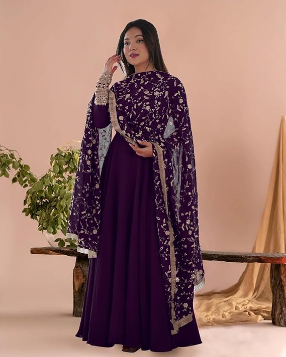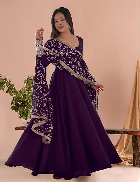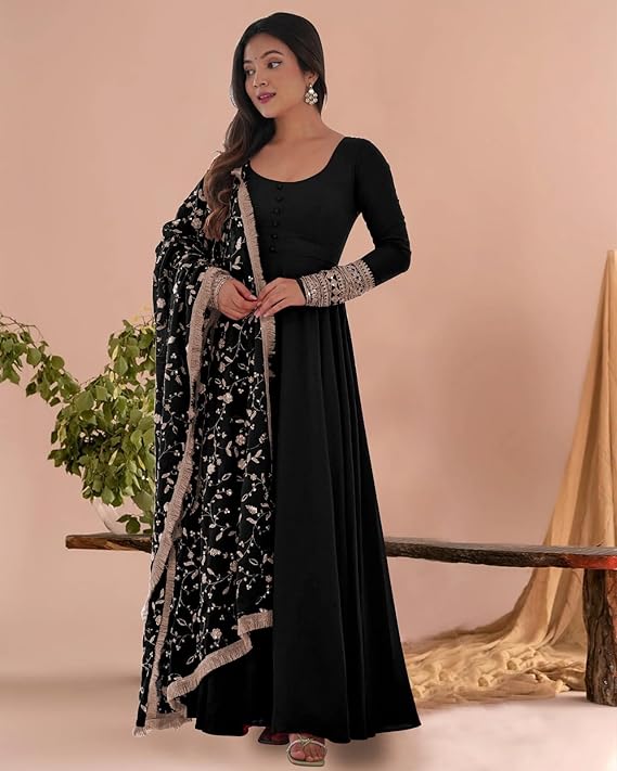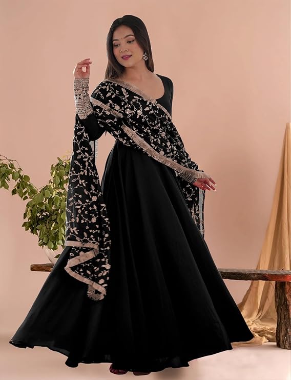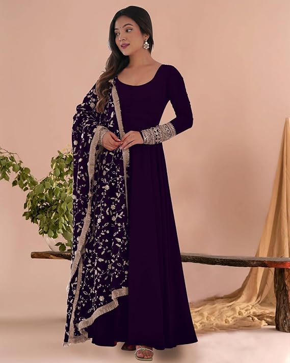 Zariya Women’s Embroidered Anarkali Gown with Dupatta