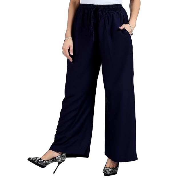 Velmora Women’s Navy Blue Rayon Palazzo Pants – Regular Fit Stylish Wear