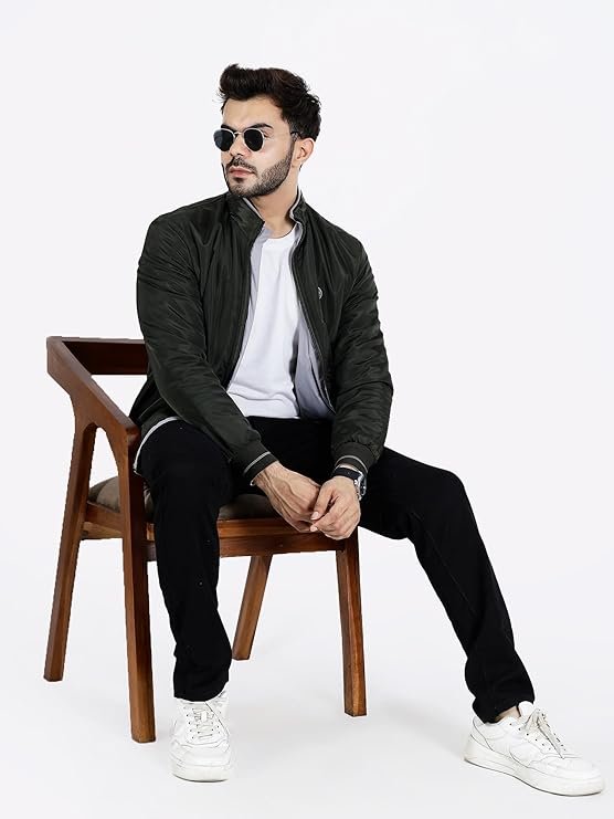 UrbanDrip Men’s Olive Green Bomber Jacket – Premium Casual Upperwear