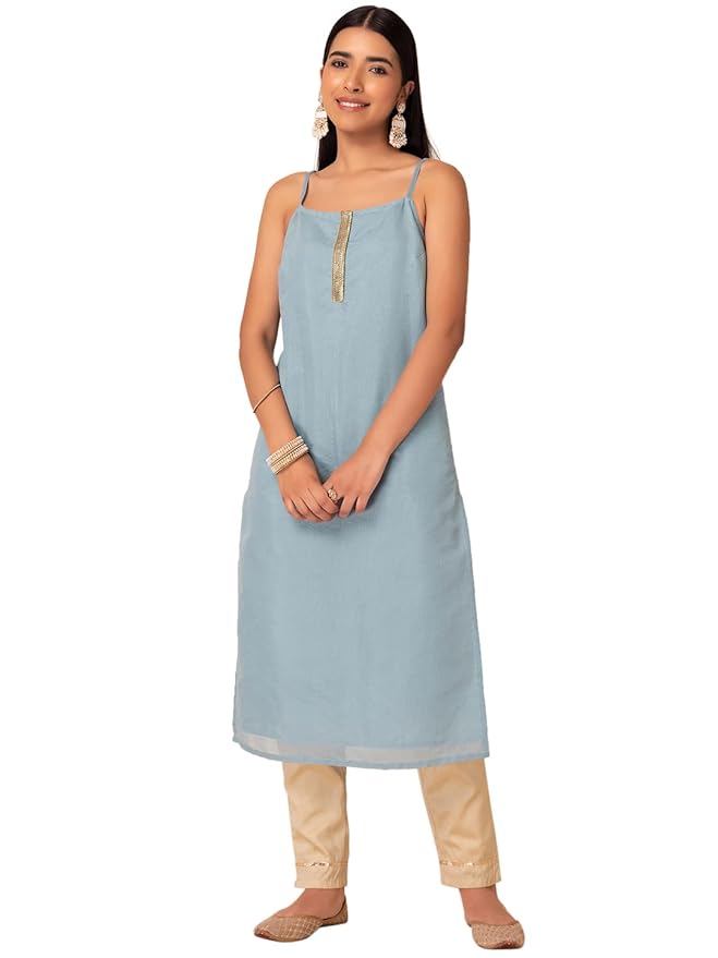 Zyra Women’s Blue Cotton Kurta – Tassel Detail Regular Fit Ethnic Wear