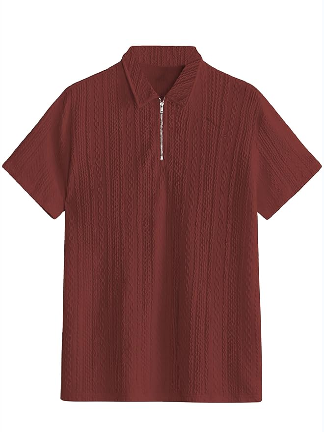 Be the first to review “Velmora Men’s Maroon Jacquard Chain Polo T-Shirt – Stylish Casual Wear”