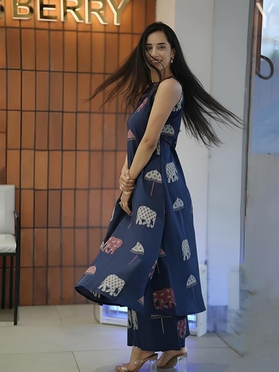 Be the first to review “Zyra Women’s Blue Cotton Kurta Set – Daily Wear Ethnic Outfit with Dupatta”