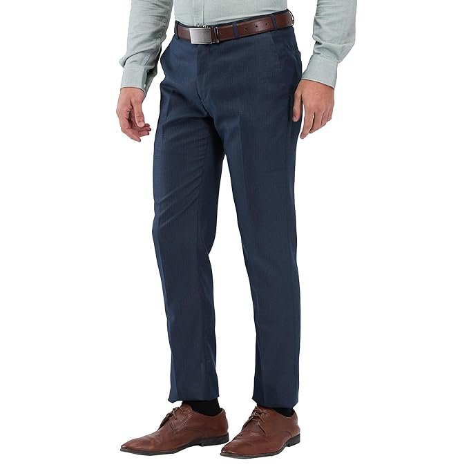 Velmora Men’s Blue Slim Fit Formal Trousers – Poly Viscose Blend Office Wear