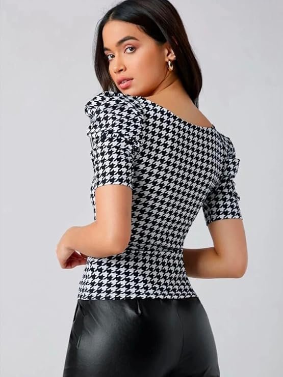 AureliaX Women’s Sweetheart Neck Puff Sleeve Top – Graphic Print Stylish Wear