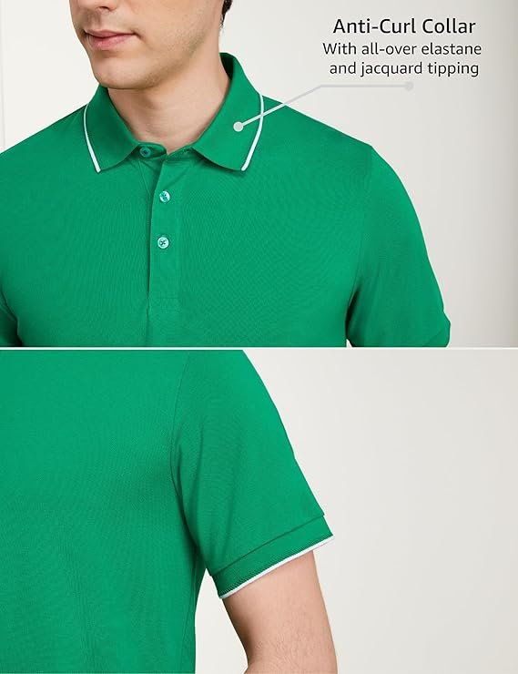 - Anti curl collar made with all over elastane along with jacquard tipping
