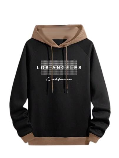 StyleCraft Men’s Printed Regular Fit Hoodie – Black/Khaki