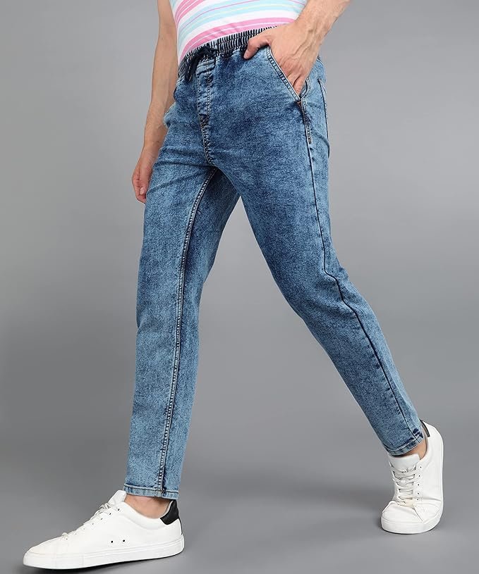UrbanDrip Men’s Blue Jogger Fit Jeans – Mid Rise Stretchable Casual Denim
