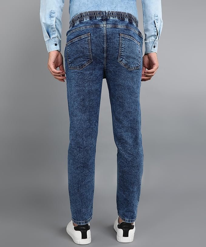 Stylish & Trendy Towel Washed Dark Blue Jogger Jeans – Elasticized Waistband with Drawstring