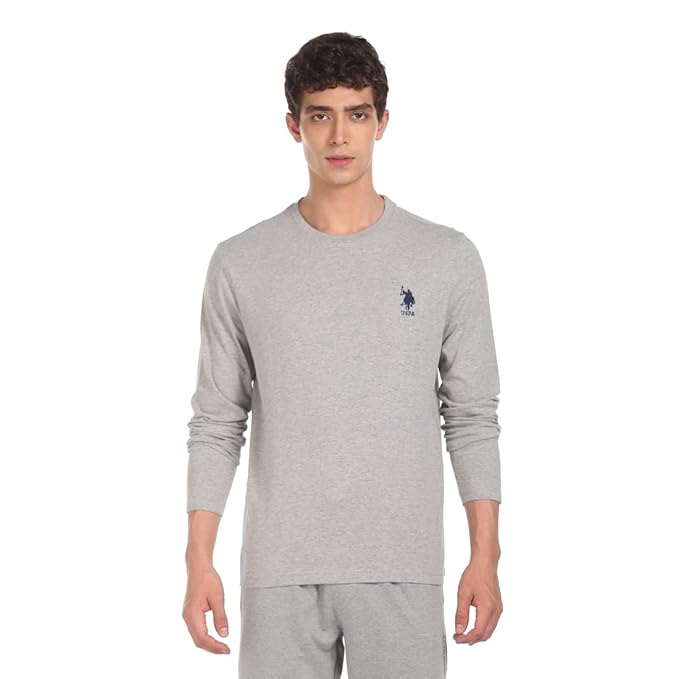 Full sleeve Crew neck Tshirt with logo embroidery; rib trim for neck finishing