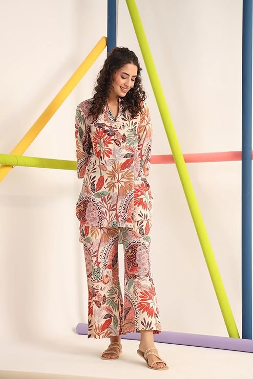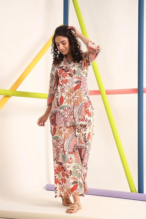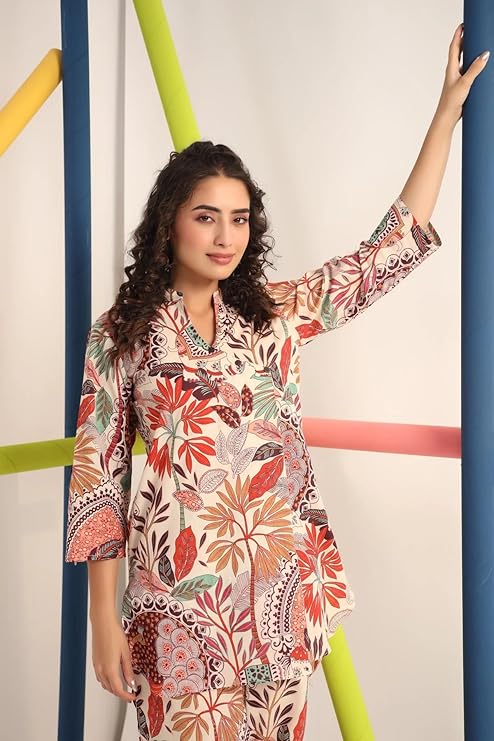 EthniQ Women’s Printed Short Kurti with Pant Set